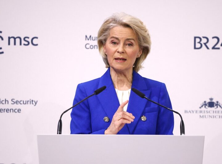 La presidenta de la Comisión Europea, Ursula von der Leyen, habla durante la Conferencia de Seguridad de...